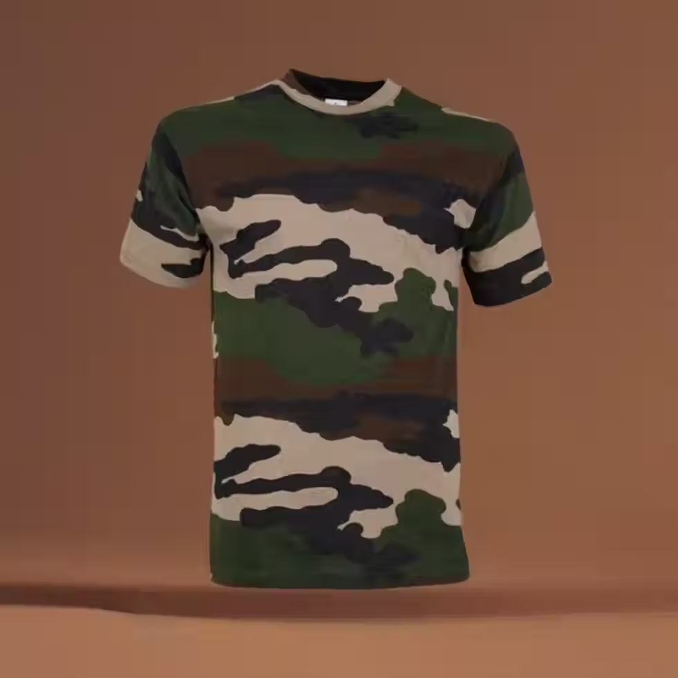 Le t-shirt camouflage est en coton peigné ce qui implique plus de douceur, de souplesse et de constance dans la tenue du tissu.